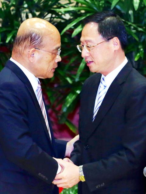 It is not possible for the Cabinet to issue an executive order halting the construction of the plant in New Taipei City’s Gongliao District (貢寮), Jiang told a joint press conference he held with Su following their 90-minute meeting at the Executive Yuan complex in Taipei.