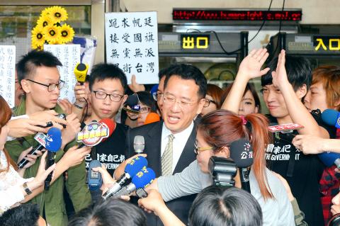 However, instead, seven of the movement’s leaders and Academia Sinica associate research law fellow Huang Kuo-chang (黃國昌) went to the District Prosecutors’ Office at 1:30pm yesterday asking to be questioned by prosecutors directly.