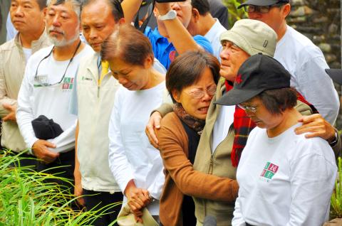 Appearing physically weak due to the hunger strike, Lin had to be assisted by his wife, Fan Su-min (方素敏), and younger sister, Lin Li-chen (林麗貞), on the 300m walk from the gate of the cemetery to the tomb of his mother and twin daughters.