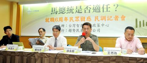 As many as 64.8 percent of respondents in the think tank’s poll said Ma had not done a good job, Taiwan Thinktank deputy executive Lai I-chung (賴怡忠) told a press conference yesterday.