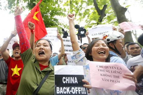 The row over the South China Sea was sparked by Beijing’s movement of an oil rig near the Paracel Islands (Xisha Islands, 西沙群島) last week. The Paracels are claimed by Taipei, Hanoi and Beijing.