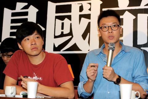 Sunflower movement leaders Lin Fei-fan (林飛帆) and Chen Wei-ting (陳為廷) yesterday announced the establishment of a new social activist group, Taiwan March (島國前進), saying the group would focus on the “unfinished business” of the three-week-long movement’s goal of promoting “direct democracy.”