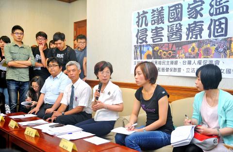 Lee Chun-ta (李俊達), a representative from the student group Democracy Tautin, and Black Island Nation Youth Front spokesperson Huang Yu-Fen (黃郁芬) criticized Taipei hospitals for providing visit records to authorities. They accused the hospitals of flouting medical ethics and said that the hospitals had become the authorities’ stooges.