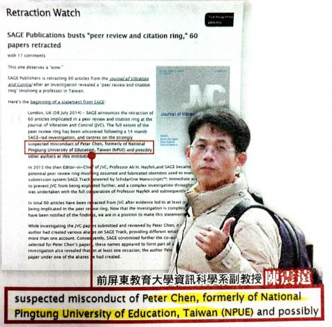 The accusations are centered on Chen Chen-yuan (陳震遠), also known as Peter Chen, who has since resigned from his position as associate professor of computer science at the National Pingtung University of Education in southern Taiwan.