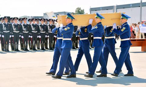 A Dutch Hercules C-130 that Dutch government spokesman Lodewijk Hekking says carried 16 coffins was the first to land, closely followed by an Australian C-17 Globemaster plane carrying 24 coffins.