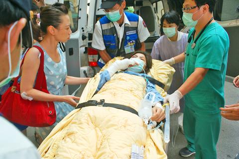 Hung Yu-ting sustained inhalation burns and burns to her back and both of her legs. She is hospitalized, but her life is not in danger.