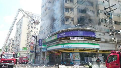Immediately following the sound of the explosion, black smoke and flames were seen coming out of the third floor of an apartment building on Ankang Road in Sindian District, while broken glass and pieces of sand and concrete rained down on the street below. The force of the blast also broke the windows of buildings across the street.