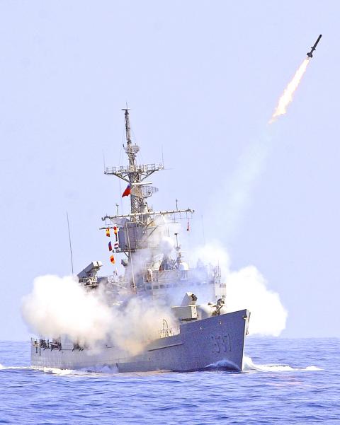 The vessels taking part in the exercise off the east coast included Keelung-class destroyers, Chengkung-class frigates, a Lafayette-class frigate, Knox-class frigates, Kuang Hua VI-class missile boats and a submarine, navy spokesman Vice Admiral Wen Cheng-kuo (聞振國) said.