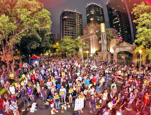 The crowd was galvanized by guest appearances from prominent activists, including Taiwan Labor Front secretary-general Son Yu-liam (孫友聯), Sunflower movement leader Chen Wei-ting (陳為廷) and human rights lawyer Lai Chung-chiang (賴中強). Representatives from various communities threatened by forced evacuation for development projects also showed up to express their solidarity with the movement.