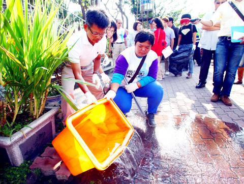 “To prevent more mosquito larvae from breeding in drains during the dry season, the department recently began an experimental program to curb the mosquitoes’ rampant growth by pouring seawater down the drains,” Disease Prevention Division section head Ho Hui-pin (何惠彬) said.