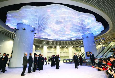 “To maximize the ease of transferring between lines, Taipei’s MRT system was designed around three horizontal and vertical lines, with Songshan the final horizontal line,” Hau said, adding that with the opening, the city’s core MRT network is now completed.