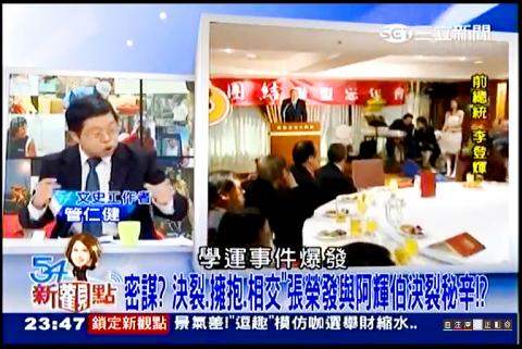 A video clip posted online by netizens showed that one of the program’s commentators, Kuan Jen-chien (管仁健), was trying to say that the Tiananmen Square Massacre, which occurred on June 4, 1989, was the reason why former president Lee Teng-hui (李登輝) was on good terms with Evergreen Group chairman Chang Yung-fa (張榮發). However, the phrase “Tiananmen Square on June 4” (六四天安門) was silenced by a beep lasting about two seconds.