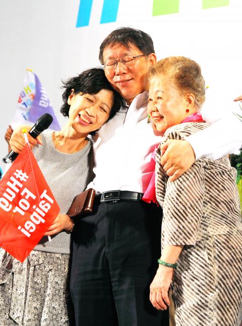 More than 200,000 people, according to organizers’ estimates, took to the streets yesterday to join independent Taipei mayoral candidate Ko Wen-je (柯文哲) in a carnival-themed campaign parade, voicing their support for Ko’s “campaign for a change.”