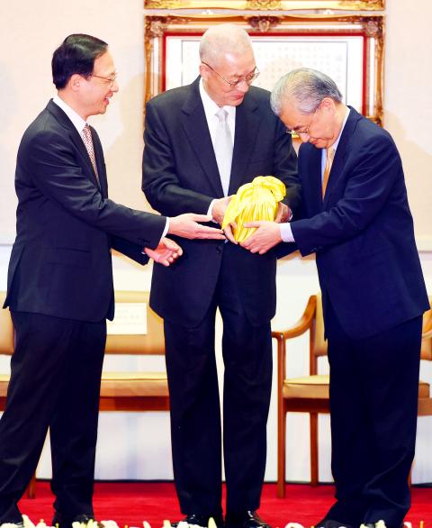 After the swearing-in and handover ceremonies, Mao visited the KMT caucus and Legislative Speaker Wang Jin-pyng (王金平).