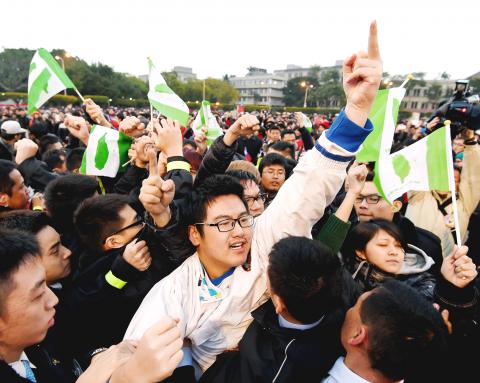 Political figures — including Democratic Progressive Party (DPP) Chairperson Tsai Ing-wen (蔡英文) and Taipei Mayor Ko Wen-je (柯文哲) — yesterday criticized the government for postponing a decision on whether to release former president Chen Shui-bian (陳水扁) on medical parole, while activists protested during a flag-raising ceremony in front of the Presidential Office Building in Taipei.