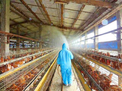 The outbreaks came after the bureau confirmed last Monday that a farm on Pingtung County’s Dawu Mountain (大武山), which raises layer chickens and since last month has reported sporadic deaths among its birds, had been hit by H5N2, resulting in the culling of about 120,000 chickens.