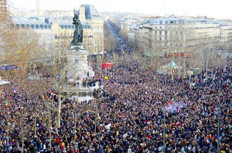 Under blue skies, emotions were running high in the shell-shocked City of Light, with many of those gathering from all walks of life already in tears as they came together under the banner of freedom of speech and liberty.