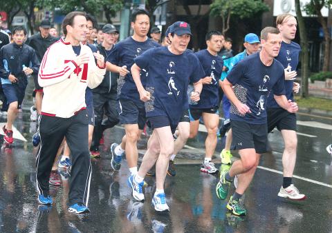After completing the 5km run, Ma walked back to his residence and took a rest before he continued with his scheduled visits in Yilan and Penghu counties, and in Taipei later that day, the Presidential Office press release said.
