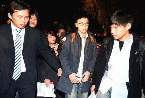 Lin, Chen and Huang were among 22 indicted for breaking into the Legislative Yuan on March 18 last year, which led to an occupation lasting almost 23 days by hundreds of protesters. Wei, who led another group of protesters in an offshoot siege of the Executive Yuan across the road on March 23 last year, was one of 93 people indicted over that incident. Charges were also brought against Hung Chung-yen (洪崇晏) and two others, who on April 11 last year took to the Web to mobilize a large crowd to surround the Zhongzheng First Police Precinct near the legislature, the precinct responsible for maintaining order during the protests.