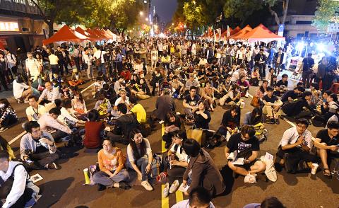 At the largest rally, more than 1,000 demonstrators returned to Jinan Road next to the legislative compound last night to show their support for the activist groups.