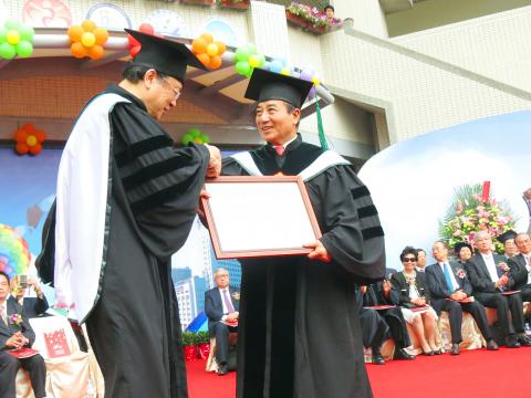 During the ceremony, Academia Sinica’s Lo Hao (羅浩), another honorary doctorate recipient, said that while he has become Wang’s “schoolmate,” Wang would probably be a president next year; a quip that brought a round of laughter from audience members.