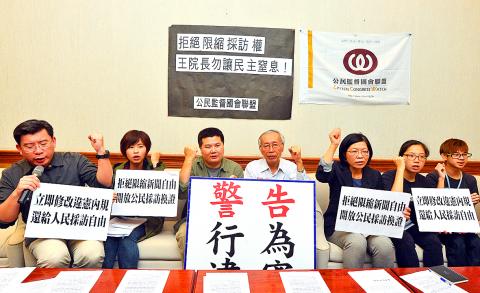 The groups demanded the removal of the “unconstitutional” provisions in the legislative directives before the end of this plenary session and the immediate suspension of the practice which blocks independent journalists from entering the Legislative Yuan.
