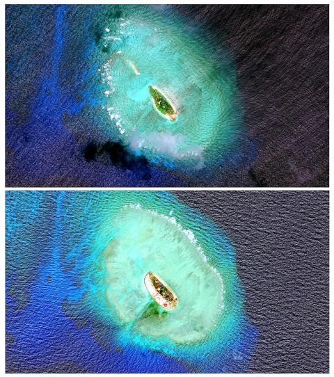 She said the images showed that Vietnam had reclaimed about 65,000m2 of land at West London Reef and 21,000m2 at Sandy Cay. This compared with 900,000m2 reclaimed by China at a single reef, Fiery Cross Reef (Yongshu Reef, 永暑礁).