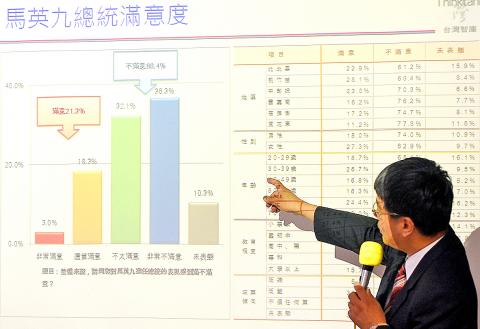 About 68.4 percent of respondents were dissatisfied with Ma’s performance as president, against 21.3 percent who said they were satisfied, in a telephone-based poll conducted on Sunday, Taiwan Thinktank said yesterday.