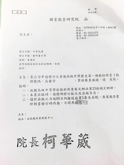 However, NAER Development Center for Textbooks director Yang Kuo-yang (楊國揚) said that only one valid version of a textbook is allowed at a time.