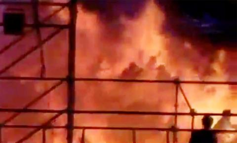 An explosion occurred about 8:30pm after colored powder that was sprayed over "Color Play Asia" partygoers in front of a stage apparently exploded in the air, triggering a fire that was quickly brought under control.