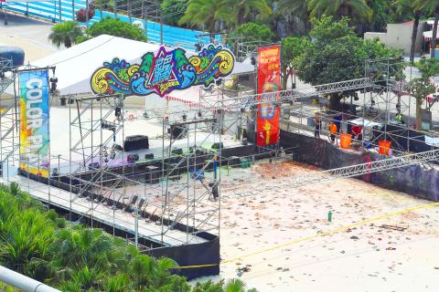 Five individuals were questioned by police on Saturday night, including the event’s organizer, Lu Chung-chi (呂忠吉), equipment provider Chiu Po-ming (邱柏銘), special effects engineer Liao Chun-ming (廖俊明) and two other staff responsible for spraying the powder.