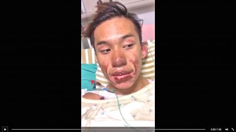 In a video uploaded to Facebook, the National Taiwan Sport University sophomore said he has made it his goal to recover quickly so he can be the second of the fiery explosions’ victims being treated at the hospital in New Taipei City to get back on his feet.