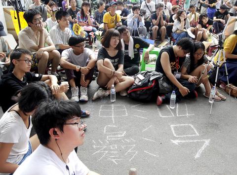 “Today is the day that Taiwan’s history and education died,” National Taichung First Senior High School Apple Tree Commune Club spokesperson Chen Chien-hsun (陳建勳) said. “All that the death of a student has gained is the education minister telling us that we should ‘look to the future.’ What is that supposed to mean?”
