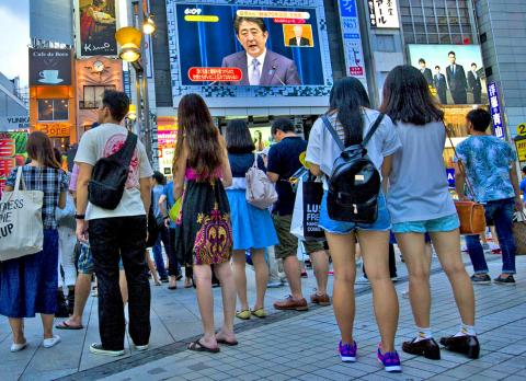 Abe, who referred to the wartime sufferings of the Chinese in his statement, said he hoped Beijing would recognize Japan’s “candid feelings” and that he hoped to meet Chinese President Xi Jinping (習近平) if the opportunity arose.