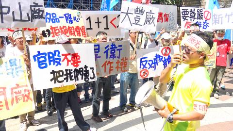 A group of SPIL employees rallied in front of the Ministry of Labor building in Taipei, saying the deal puts their jobs at risk, citing ASE’s track record of layoffs following merger-and-acquisition deals.