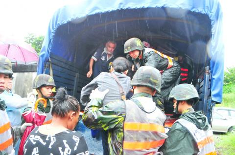 The military, working with local governments, evacuated people from areas vulnerable to falling rocks, mudslides and flooding in 39 townships and districts in Yilan, Hualien, Taitung, Hsinchu and Nantou counties and Taipei and New Taipei City.