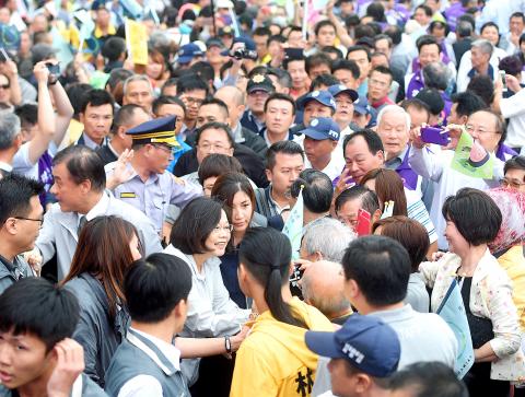 Kaohsiung Mayor Chen Chu (陳菊), who is Tsai’s campaign manager, urged people to give the DPP another chance at running the nation, saying that Tsai is capable of leading the nation out of the difficulties it is facing, just as she led the DPP to stand up again following its defeat in the 2008 presidential election.