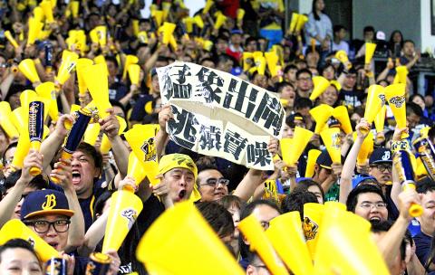 The highlight for Brothers fans was when clean-up man Peng Cheng-min (彭政閔) rounded the bases in the sixth, with the Monkeys’ outfielder unable to find the ball, the first inside-the-park home run in Taiwan Series history.