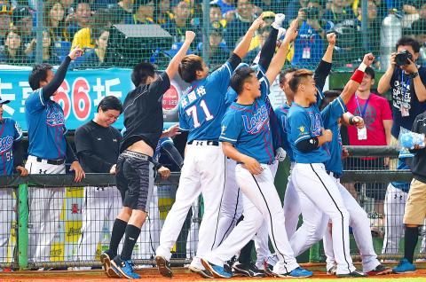 The Monkeys coasted rest of the way, with catcher Lin Hung-yu (林泓育) blasting a two-run homer in a three-run rally in the final frame to make the final score 9-2.