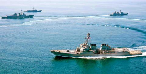 Chinese authorities “monitored, shadowed and warned” the guided-missile destroyer in the Spratly islands (Nansha Islands, 南沙群島) — which Taiwan, Malaysia, the Philippines, Vietnam and Brunei also state claims to — Beijing said.