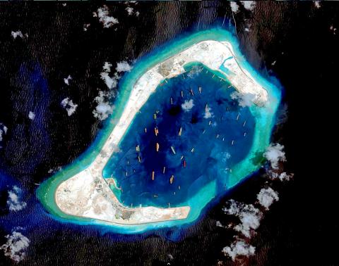 Beijing has repeatedly said the construction work is primarily for civilian purposes, and Chinese President Xi Jinping (習近平), during a visit to Washington last month, pledged that the nation would not militarize the area.