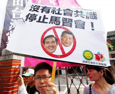“Ma doesn’t have any mandate for surprising us with this meeting — ever since last year’s Sunflower movement, it has been clear that the handling of cross-strait relations by the governing party is not trusted by the people,” Social Democratic Party Chairman Fan Yun (范雲) said.