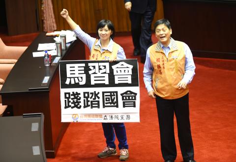 “The president should publicly denounce Beijing’s claim that the Ma-Xi meeting is an arrangement based on ‘one China’ principle,” the DPP caucus said. “Negotiation or signing of documents in any form, or issuing a joint press release or statement on political issues such as ‘the two sides belong to one China,’ ‘one China,’ the ‘one China framework,’ ‘one country, two governments,’ ‘one country, two regions,’ ‘military mutual trust mechanism,’ ‘peace treaty’ or ‘political relationship’ should not be allowed at the Ma-Xi meeting,” it added.