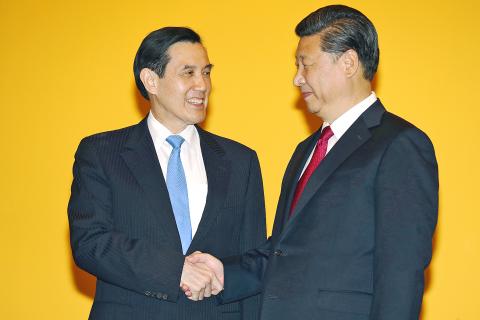 President Ma Ying-jeou (馬英九) and Chinese President Xi Jinping (習近平) held a historic meeting in Singapore yesterday, the first time the leaders from both sides of the Taiwan Strait have met since 1949 after the Chinese Nationalist Party (KMT) was defeated by the Chinese Communist Party in the Chinese Civil War.