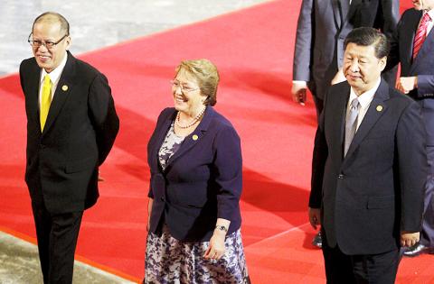 In a speech at a business forum in Manila ahead of the summit, Chinese President Xi Jinping (習近平) did not directly mention the territorial disputes, but he did call on Pacific nations to “resolve our differences through dialogue and consultation.”