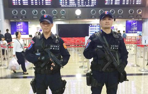 National Policy Agency Director-General Chen Kuo-en (陳國恩) said the nation’s counterterror mechanism is comprised of two levels: The National Security Council and the National Security Bureau are in charge of the national security level, and the Executive Yuan’s Office of Homeland Security is in charge of the administrative level, and if incidents involving violent assaults take place, the police would counteract with emergency squads.