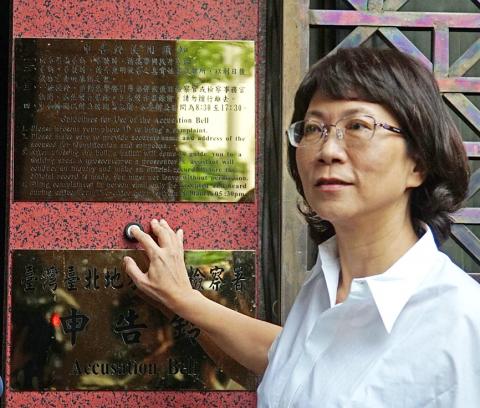 Wang filed the lawsuit hours after Tuan held a press conference yesterday morning, during which he presented property declaration documents filed since 1993 by Wang’s husband, Judicial Yuan Department of Government Ethics Director Huang Tung-hsun (黃東焄), to back his claims.