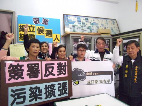 They asked that the parties’ presidential and legislative candidates endorse a combination of proposals, including stopping the expansion of the Southern Taiwan Science Park in Tainan and Kaohsiung, the establishment of an oil refinery area in Kaohsiung and the expansion of China Steel Corp and the state-run oil refiner CPC Corp.
