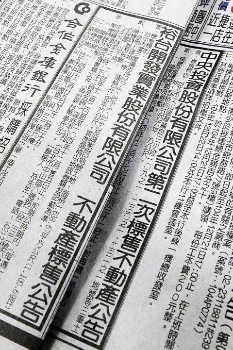 The DPP caucus told a news conference in Taipei that the Chinese-language Commercial Times has been publishing advertisements calling for buyers for 26 plots owned by the KMT — three in Taipei, six in Taichung and 17 in Changhua — and for 80 percent of the shares of a hotel in Palau.