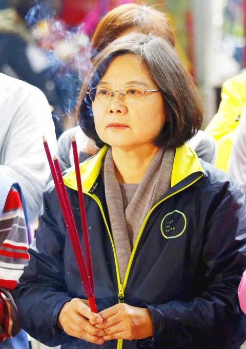 “Issues regarding cross-strait exchanges should be subjected to full-scale negotiations. I would take them in my stride if they have been through a democratic procedure and handled with equality and dignity,” Tsai said on the sidelines of a Taipei campaign event for DPP legislative candidate Rosalia Wu (吳思瑤).